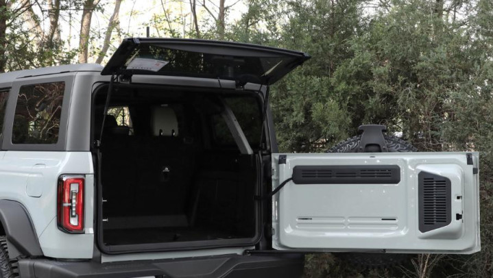 尾部采用了传统硬派越野车惯用的布局风格,两侧尾灯组采用了竖向布局风格,红白相间的设计看起来非常时尚。中间采用了外挂式胎压以及侧开式尾门,下方则是更加硬派的黑色包围。