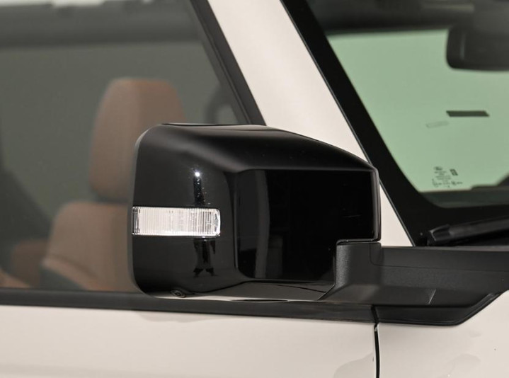 车身侧面造型方正,一条平直的腰线贯穿前后,前后轮眉硬朗且突出,下方还配备了全地形越野轮圈。车身尺寸方面为4800*1990*1835mm,轴距为2950mm。接近角为38度,离去角为31度,最大涉水深度为800mm,高配车型接近角为45度,离去角为37度,最大涉水深度为925mm。